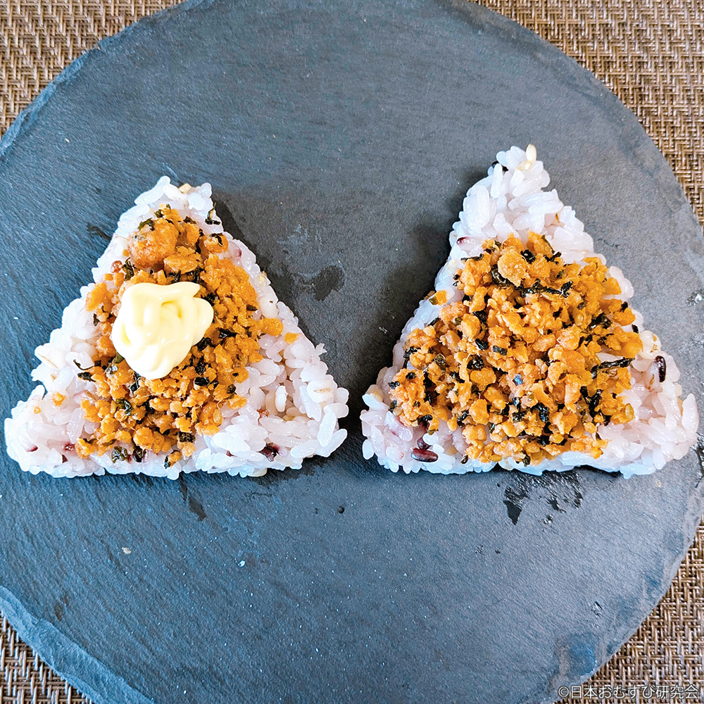 鮭をベースに小刻みのわかめの入った『鮭わかめ しそ風味』をおむすび具材として入れていきます!