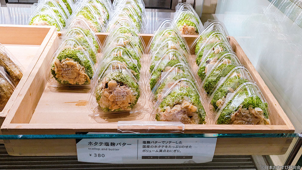 ホタテにバターなんて、文字を見ているだけでも美味しい響きが体の中で奏でてくれます。居酒屋の一品メニューとしてあってもおかしくないほどの食材がおむすび具材になるとは…。