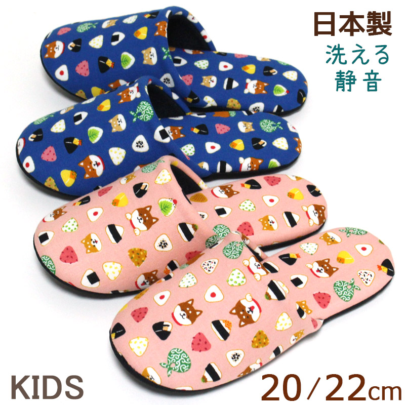 スリッパ 子供 キッズ おにぎりと柴犬 2サイズ展開 20・22cm 洗える 静音 男の子 女の子 かわいい 日本製 価格:2000円 |