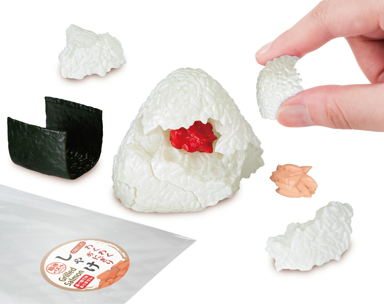 お米パーツが9つに分かれていて、具材にはしゃけと梅。さらに海苔のパーツ、シールとおにぎり袋がセットになっていてかなりクオリティが高いです。